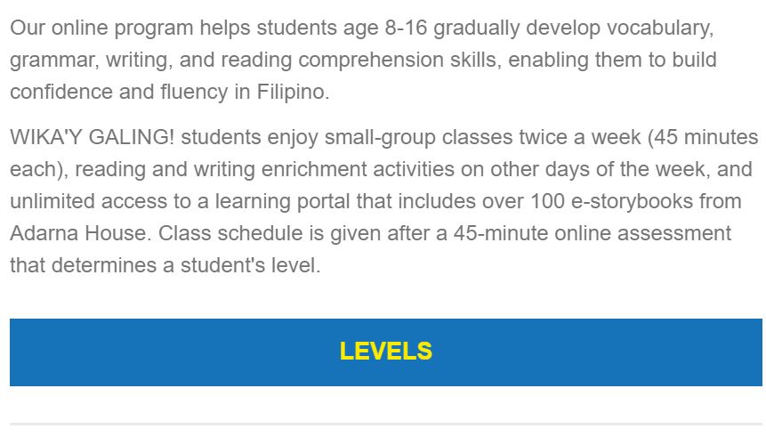 WIKA’Y GALING! uses enjoyable children’s literature and interactive lessons anchored on Philippine culture to make Filipino relevant and interesting -- even fun!